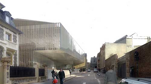 Centre de congrès Jacobins : vue depuis la rue d'Echange sur l'espace restauration (projet Guervilly-juin 2010)