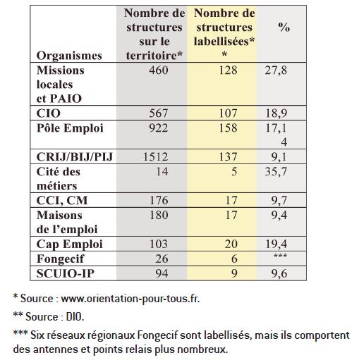 La loi de 2009 avait aussi institué le principe de labellisation pour les organismes d’orientation, et là encore le Centre d’analyse stratégique pointe une inégale couverture du territoire.