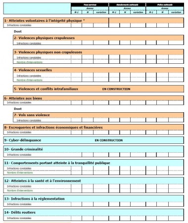 Certains agrégats déjà existants – répertoriant le nombre de cambriolages, de vols d’automobiles ou de vols avec violence constatés pénalement – seront enrichis par des indicateurs d’efficacité, comptabilisant désormais également le nombre d’interventions effectuées par les services.