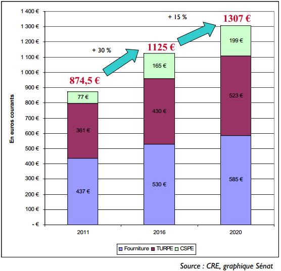 La Commission de régulation de l’énergie a ainsi annoncé une augmentation de 30% d’ici à 2016, scenario repris par la commission d’enquête sénatoriale sur le coût réel de l’électricité de juillet 2012.