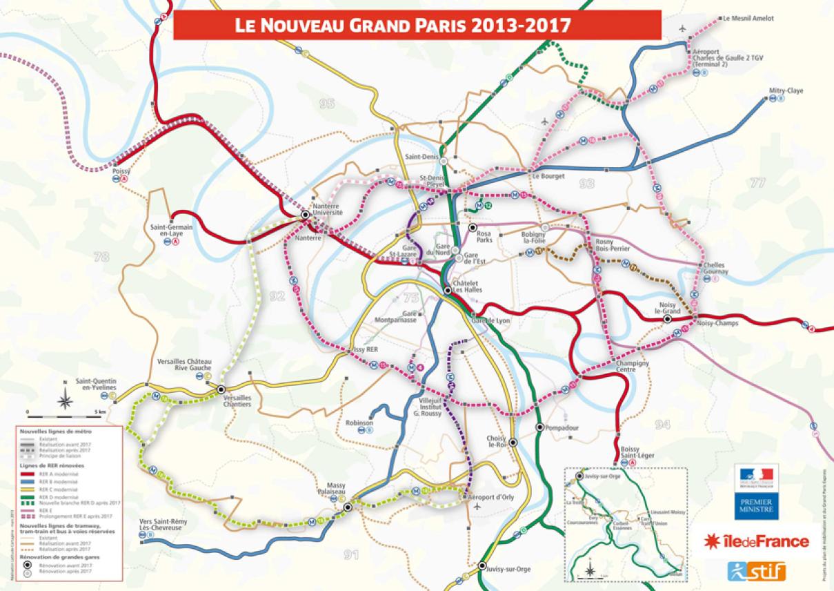 Modernisation du réseau existant – Ce nouvel ensemble, comprenant le futur GPE et le plan de mobilisation pour améliorer et prolonger l’existant, a été baptisé Nouveau Grand Paris. « Les lignes seront lancées en parallèle, les tronçons s’enchaînant », a précisé le Premier ministre, pour ne pas donner l’impression d’avoir des territoires servis en premier et d’autres en dernier.
