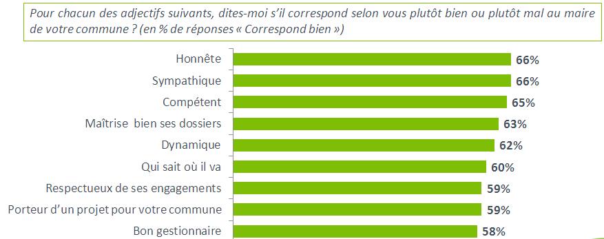64 % des personnes interrogées (1) ont une bonne opinion de leur édile, et 61 % indiquent faire confiance aux élus de leur commune pour prendre de bonnes décisions.