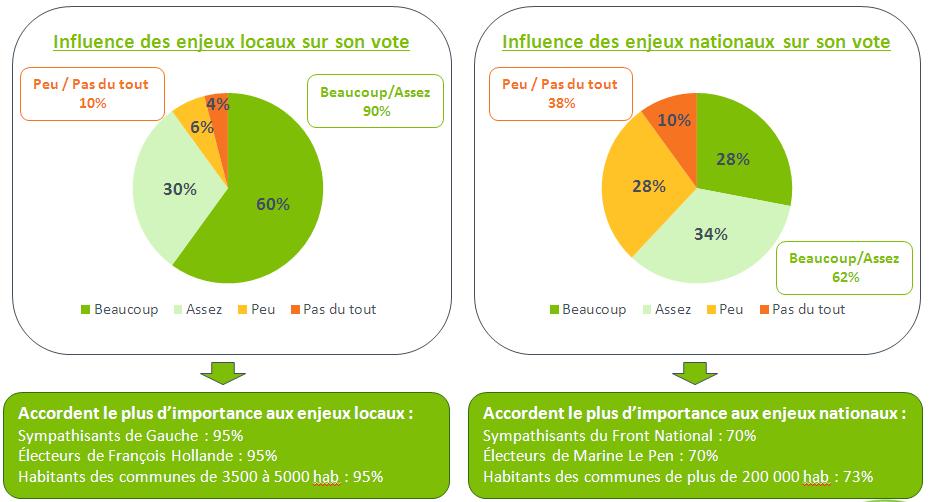 L’enquête révèle aussi que les enjeux locaux pèsent plus sur le vote pour les électeurs de gauche, alors que les électeurs FN « nationalisent » le scrutin.