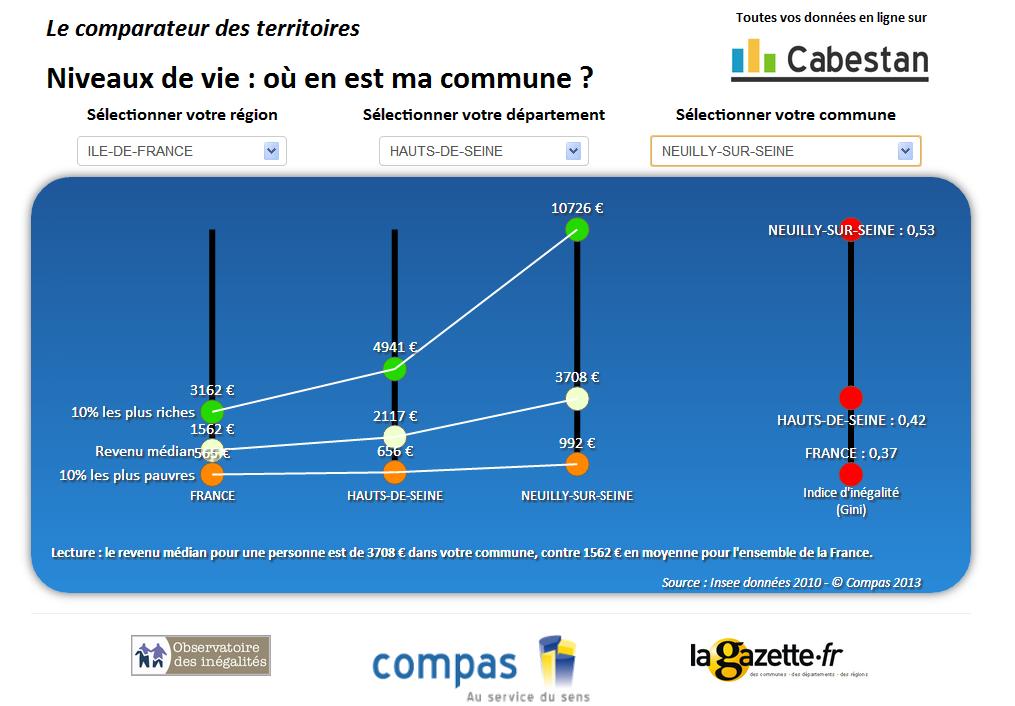 « Nous souhaitons mettre à disposition des élus et des techniciens des collectivités territoriales un outil simple pour que chacun situe sa ville par rapport aux communes voisines – surtout si elles sont démographiquement comparables –, à son département et à sa région, en termes de revenus de ses administrés et donc des inégalités qui en découlent. Nous souhaitons également alimenter le débat sur les inégalités territoriales, débat qui va certainement s’aiguiser à l’approche des élections municipales. On peut imaginer que les candidats chercheront à affiner leur connaissance de la population pour bâtir leur programme », explique Louis Maurin, consultant au Compas (Centre d’observation et de mesure des politiques sociales) et fondateur de l’Observatoire des inégalités.