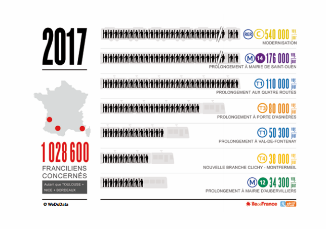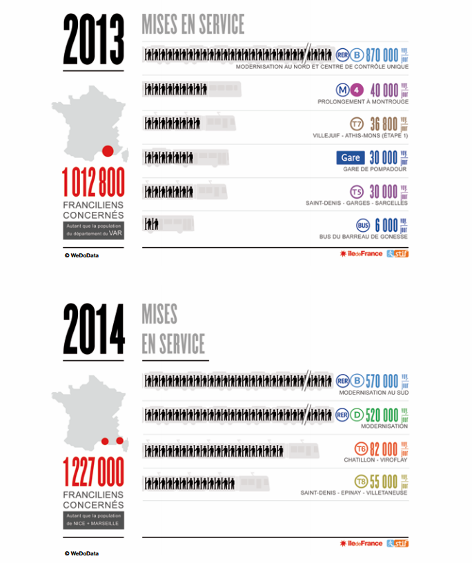 RER malades – Concrètement, le schéma directeur du Réseau Express Régional prévoit un investissement de 908 millions d’euros d’ici 2017. Seront concernés par le plan de modernisation les projets à réaliser d’ici 2017, « soit un investissement qui est le triple des investissements réalisés entre 2007 et 2012 » a rappelé Jean-Paul Huchon. « D’ici 5 ans, 57 000 emplois seront induits par les seuls chantiers du plan de mobilisation » a affirmé le président de la région Ile de France. « Au programme, 42 chantiers sont prévus, parmi lesquels 30 ont démarré, tandis que les 12 autres en sont au stade de l’enquête publique. Car l’amélioration des transports du quotidien demeure l’un des passages obligés du Grand Paris Express, les actuelles lignes RER (A,B,C,D) étant les maillons faibles du réseau existant . Certaines liaisons Intercités étant de leur côté sous perfusion…