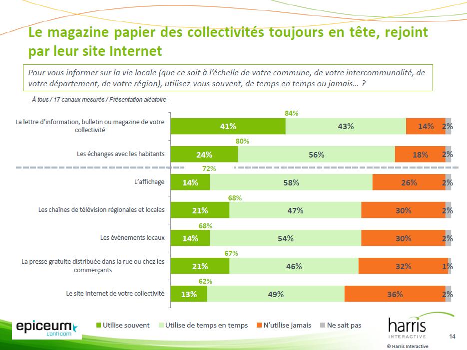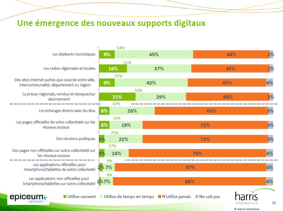 « Jusqu’à présent les sites web indépendants étaient plus utilisés et plus appréciés, indique Christian de la Guéronnière. Désormais, 62 % des sondés s’informent sur les sites Internet des collectivités contre 51 % pour les non-officiels, et 22 % pensent que les premiers informent très bien contre seulement 13 % pour les seconds « .