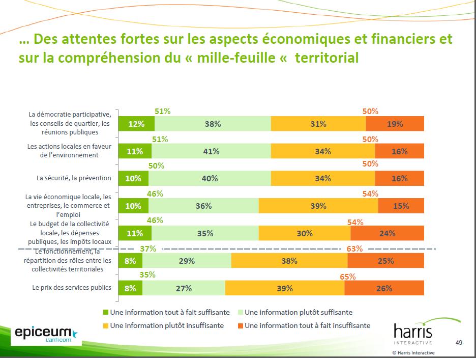 Le baromètre Epiceum précise de son côté qu’« un Français sur deux juge ne pas avoir eu d’informations suffisantes sur la démocratie locale et seuls 40 % estiment que cette info les incitent à participer à la vie publique locale. »