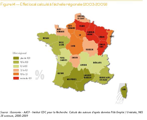 Les effets positifs ou négatifs régionaux sur le développement économique des entreprises (Cliquez sur l’image pour l’agrandir).« On voit ainsi que certains territoires ont très bien compris la nécessité de faire système, d’autres ont des difficultés à le faire, mais il ne faut pas interpréter ces variations comme une carence de l’action publique, prévient-il. Les liens entre entreprises sont également en jeu. »