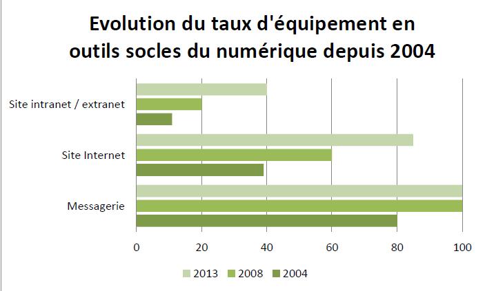 Les intercommunalités ont certes rattrapé leur retard depuis de la première édition en 2004 du baromètre. Dans ce document produit par l’Assemblée des communautés de France (AdCF) et Ocalia, bureau d’études spécialisé dans l’accompagnement numérique des territoires et des institutions du secteur public, le taux d’équipement apparaît ainsi en nette hausse.