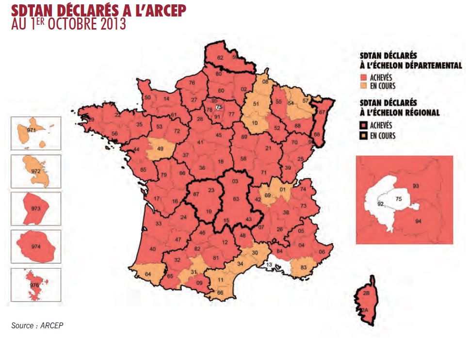 Disparités sur les stratégies des territoires – En octobre 2013, 82 départements avaient achevé leur SDTAN. La construction d’un total de 7,5 millions de prises FTTH sont déjà prévues à l’horizon 2035. La part programmée dans les neuf ans à venir devrait dépasser les 4 millions de prises. L’Avicca de son côté dénombre déjà 7 marchés attribués et 13 marchés lancés.