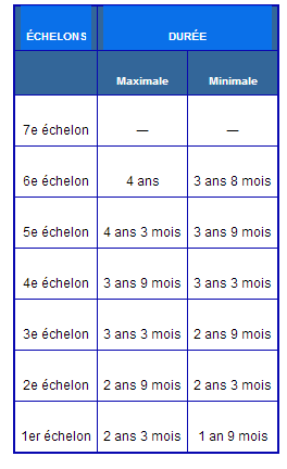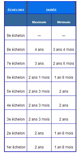 Il ajuste également les durées de certains échelons des premier et deuxième grades des grades relevant du NES de la catégorie B, afin de tenir compte des nouvelles durées de carrière dans les corps et cadres d’emplois de catégorie C.