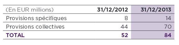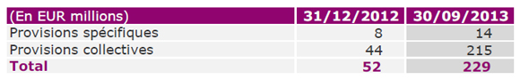 Avant de faire cette hypothèse, ces provisions se présentaient comme suit au 30 septembre 2013 :