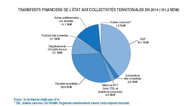 Cette 24e édition indique les montants des transferts financiers de l’Etat aux collectivités locales en 2014, soit 101,2 milliards (- 0,7 %) réparti entre les concours de l’Etat (59 milliards), les dégrèvements d’impôts locaux (9,7 milliards), les subventions spécifiques versées par les ministères (2,6 milliards) et la fiscalité transférée (29,9 milliards d’euros). L’enveloppe normée diminue de près de 3 %, soit 47,3 milliards d’euros en 2014 (dont 40,1 milliards de DGF) contre 48,8 milliards en 2013.