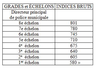 Il fixe aussi le traitement indiciaire afférent à l’échelon spécial commun aux grades de brigadier-chef principal (BCP) et de chef de police. L’échelon spécial des grades de BCP et de chef de police municipale est doté de l’indice brut 567 pour 2014. Et au 1er janvier 2015, cet échelon spécial est porté à un indice brut 574.