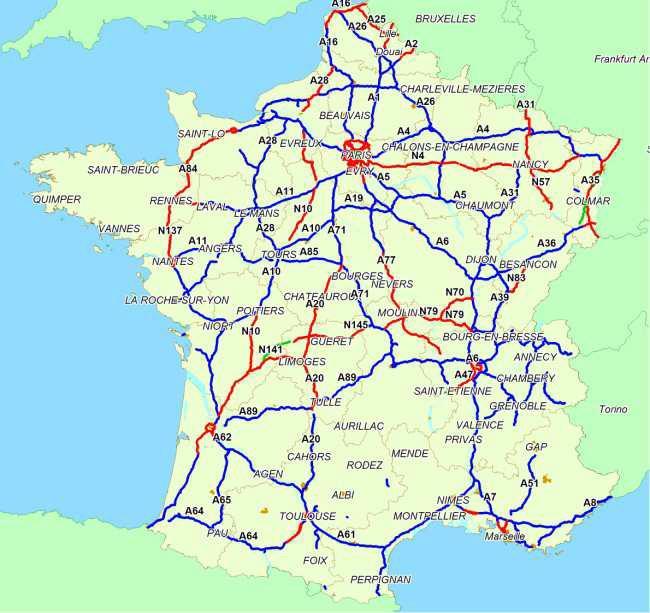 Les routes concernées sont celles dont le trafic quotidien de poids lourds excède 2500 véhicules, auxquelles s’ajoutent des routes (Alsace, périphérique parisien, un tronçon de la route Centre-Europe-Atlantique) susceptibles « de supporter un report de trafic ». Un décret viendra établir précisément ce réseau, sur la base de la carte présentée par le ministère de l’Ecologie.