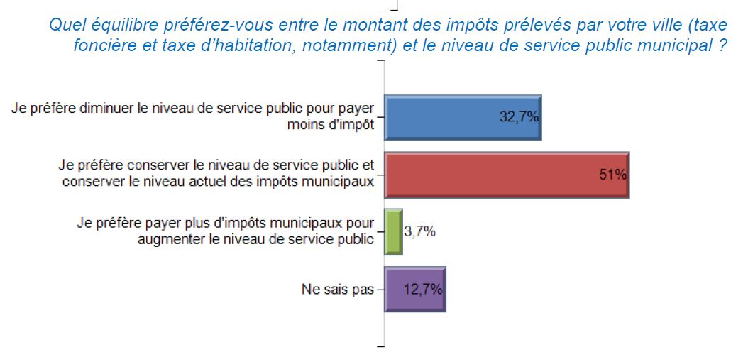 Les Français ont leur mot à dire dans de nombreux domaines. S’ils mettent la sécurité en premier, c’est à cause de la pression politique et médiatique, mais ce n’est pas une prérogative des collectivités territoriales. Je m’arrêterais plutôt sur leur attente de consultation en matière d’impôts locaux et de budget municipal qui correspond à la question du moment : l’Etat donne-t-il assez d’argent aux collectivités territoriales ? 54,4 % jugent que non. Par ailleurs, on note que s’ils sont aussi majoritaires à préférer conserver le niveau actuel des services publics et des impôts municipaux (51 %), le fossé se creuse avec ceux qui pensent le contraire (32,7 %). Soulignons que les premiers sont attachés aux valeurs dites traditionnelles de service public municipal. Les seconds, eux, aux valeurs « modernes ».