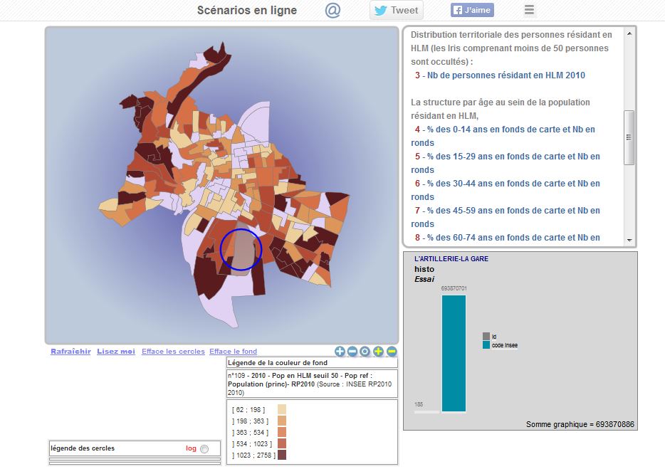 De façon plus large, l’outil se veut une machine à diffuser de la connaissance, à commencer en interne. “Je viens de partager un scénario en 3 minutes avec des collègues, sur le vieillissement de la population en HLM”, illustre Laurence Langer. Ses collègues mais aussi n’importe qui : la carte est partagée via Twitter. Et depuis la fin de 2014, n’importe qui a accès au site, peut faire des scénarios et les partager.