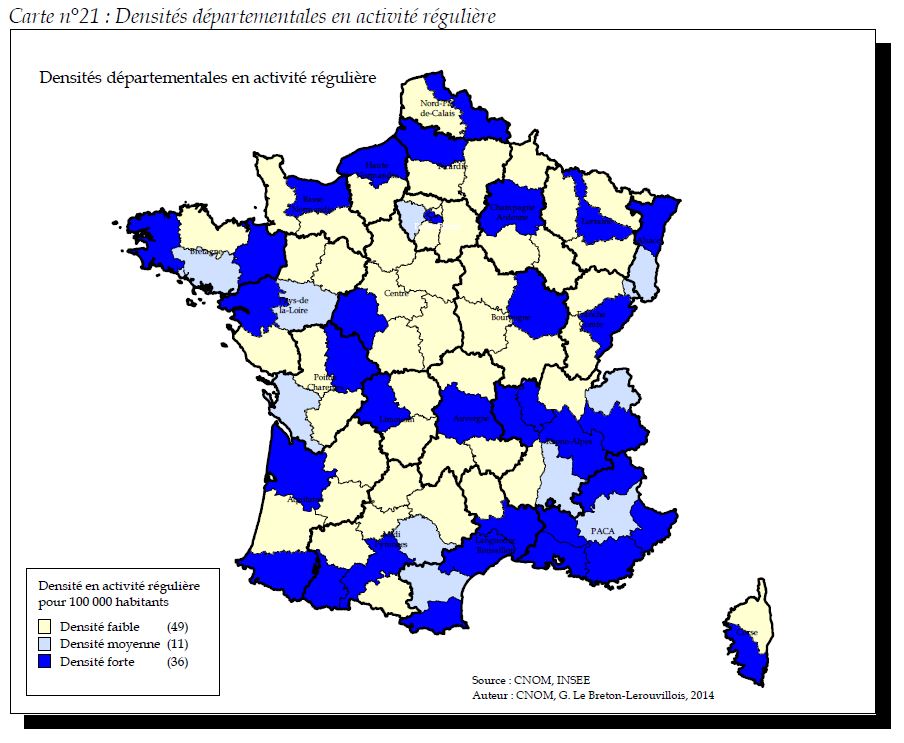 Source : Atlas de la démographie médicale au 1er janvier 2014, COM. Cliquez sur l’image pour l’agrandir.Cet article fait partie du Dossier