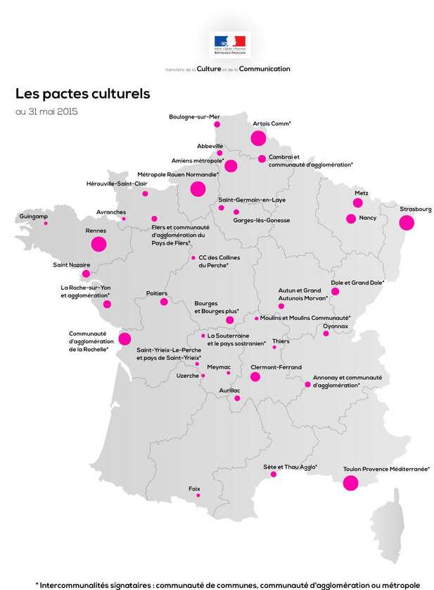 En signant un pacte culturel avec l’Etat, les collectivités voient garanti le maintien des aides du ministère de la Culture pendant trois ans (2015-2017). De leur côté, elles s’engagent à ne pas réduire leur budget « culture » pendant la même durée, 2014 servant d’année de référence. Selon Fleur Pellerin, la démarche vise à répondre à « la tentation de baisser les moyens allouées à la culture dans un contexte de forte contrainte budgétaire. » Elle se décline territoire par territoire, pour consolider les politiques culturelles locales. La ministre y voit d’ailleurs un cadre susceptible de résoudre les difficultés financières qui pèsent actuellement sur les conservatoires de musique, touchés par l’arrêt des subventions de l’Etat.