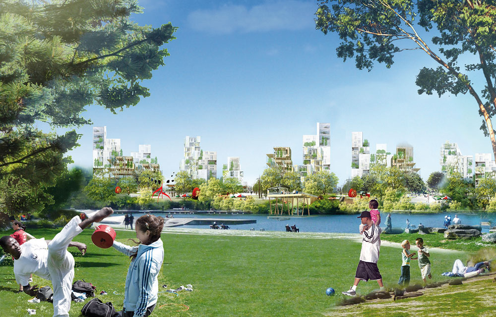 « Le parc habité » ou le «Central Park du Grand Paris » : dans le parc de La Courneuve (Seine-Saint-Denis), dont 310 des 417 hectares sont classés en zone « Natura 2000 », est prévue la construction de 24 000 logements. En intégrant les alentours du parc, ce sont au total 45 000 logements qui devraient sortir de terre, soit 65 % de l’objectif annuel assigné à terme au Grand Paris.