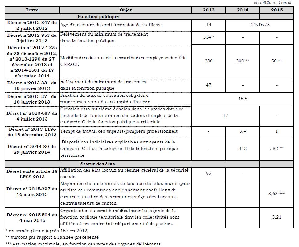 Enfin, le rapport de l’observatoire recense les principaux textes ayant des conséquences financières sur les charges de personnels.