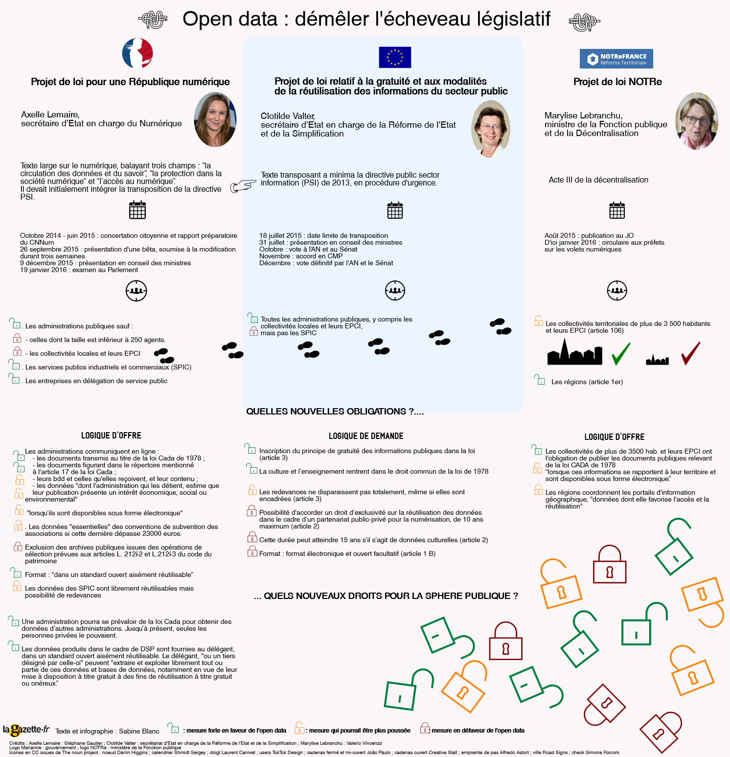 Au final, la juxtaposition des mesures dessine un tableau plus mesuré de l’ouverture des données publiques : beaucoup de cadenas s’ouvrent, certes, mais un certain nombre de dispositions pourraient être poussées plus loin. Et surtout, le projet de loi Valter fait tâche en maintenant de nombreuses exceptions à la gratuité, en particulier dans la culture. Ce qui ne doit pas manquer de troubler Henri Verdier, le directeur de la mission Etalab, devant ce texte qui brouille le message.