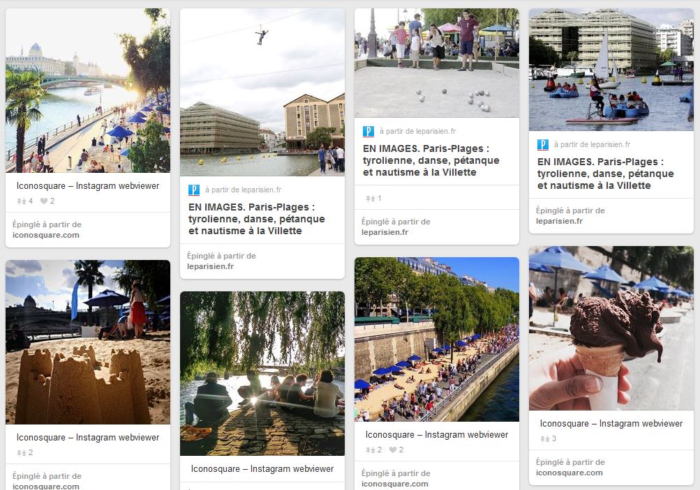 Tableau du compte Pinterest de Paris regroupant des photos de Paris Plages 2015, prises par les photographes de la ville et des citoyens.Snapchat, pour toucher les jeunes