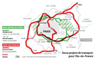 Arc Express desservira des territoires denses et peuplés permettant aux usagers de se rendre de banlieue à banlieue sans passer par Paris. La double boucle, elle, traversera les champs de patates, maintient Jean-Paul Huchon.