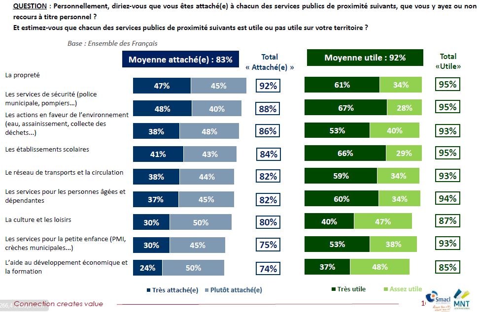 Sur le podium des services jugés « très utiles », se classent la sécurité (67% des déclarations), les établissements scolaires (66%) et la propreté (61%). « Les évènements tragiques de l’année 2015 ont percuté les modes de vie des Français et renforcé leur attachement aux services de sécurité », explique Frédéric Dabi, Directeur général adjoint de l’Ifop.