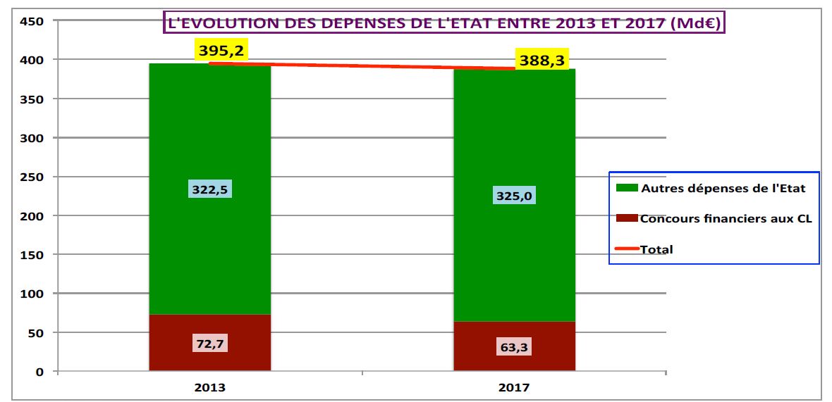 Autre chiffre frappant, signe d’une désinvolture certaine : le gouvernement se gargarise d’avoir fait baisser les dépenses publiques de 6,9 milliards entre 2013 et 2017. Or, cette baisse provient, en totalité, de celle des dotations aux collectivités, les dépenses de l’Etat ayant progressé de 2,5 milliards.