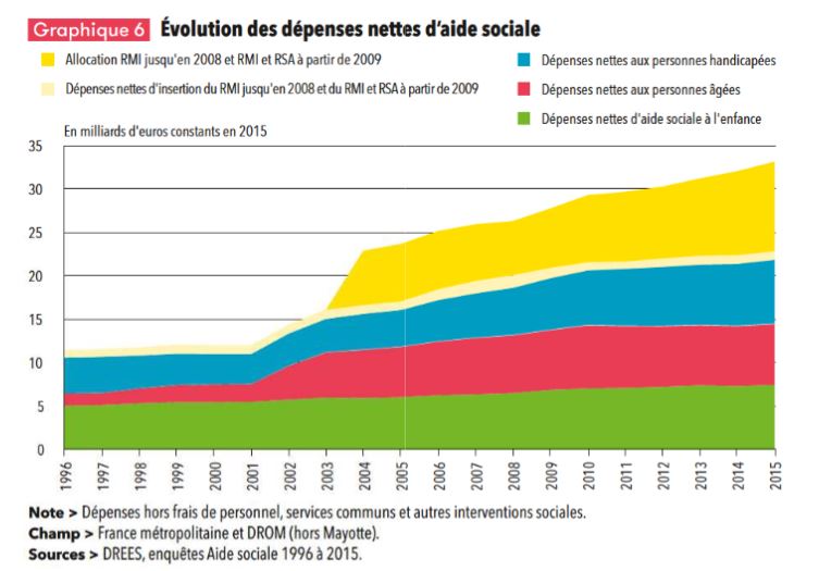 Au total, 6,5 % de la population résidant en France bénéficie d’une aide sociale des départements, en incluant les conjoints des allocataires du RSA.