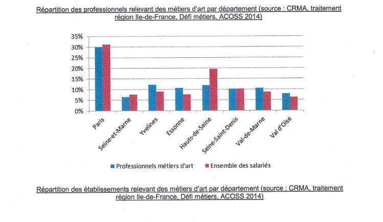 Le rapport « Les métiers d’art au service du développement et du rayonnement de l’Ile-de-France, rendu public le 30 octobre 2017 recense 5200 entreprises et 8000 actifs, avec