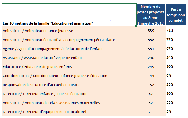 Pour autant, la filière « éducation et animation » n’a pas connu un boom des annonces semblable à celui de la famille de métiers « Infrastructures ».