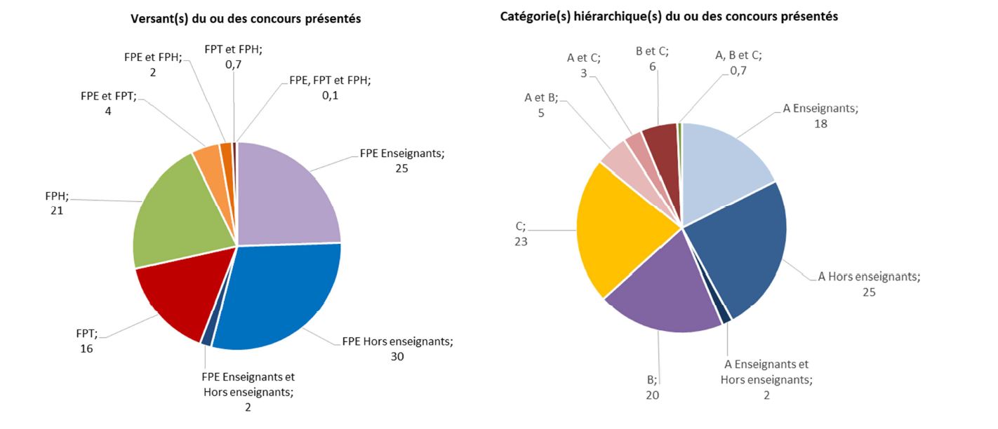 La DGFAP révèle ainsi que 10,5 % des jeunes ayant quitté pour la première fois le système éducatif au cours ou à l’issue de l’année scolaire 2012-2013 ont déclaré, trois ans plus tard, avoir déjà participé à au moins un concours permettant de devenir fonctionnaire. La fonction publique d’État draine le plus grand nombre de jeunes (6,5 %), surtout pour les postes d’enseignants (2,9 %). Suivent en proportions quasi-égales les deux autres versants de la fonction publique : 2,5 % pour la fonction publique hospitalière (FPH) et 2,2 % pour la fonction publique territoriale (FPT).