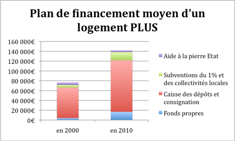 « Sachant que le budget est abondé en partie par les organismes HLM eux-mêmes à hauteur de 245 millions d’euros » rappelle Dominique Hoorens, directeur des études économiques et financières de l’Union sociale pour l’habitat (USH). C’est donc une aide budgétaire d’environ 308 millions d’euros qui est réellement consacré par l’Etat à la construction du logement social. Celui-ci a délivré, en 2010, une aide unitaire en moyenne de 3 900 euros (surcharge foncière comprise) mais reste très variable d’un territoire à un autre. Sans surcharge foncière, l’aide unitaire devrait être d’environ 600 euros pour un logement PLUS en 2012. Elle devrait s’élever à 9 600 euros pour un logement PLAI.